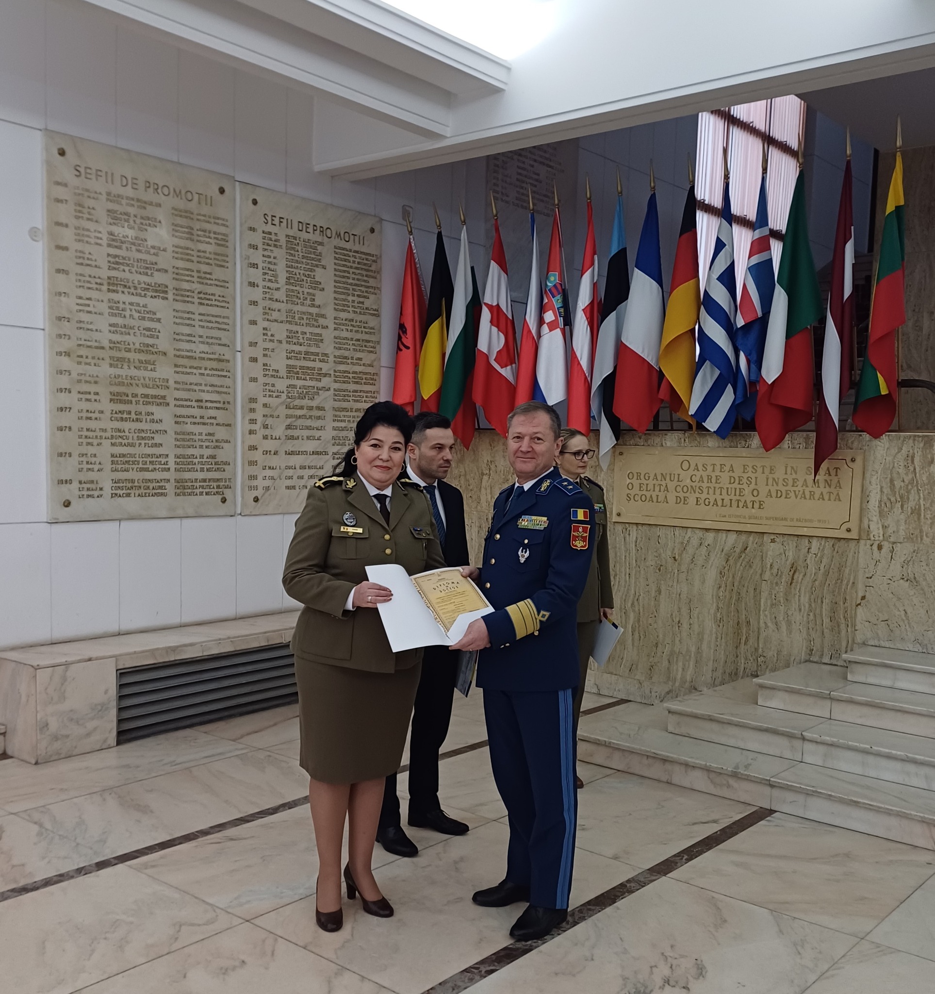 Ceremonia de decernare a diplomei de doctor în științe militare, pentru colega noastră, maior Mihaela Pană