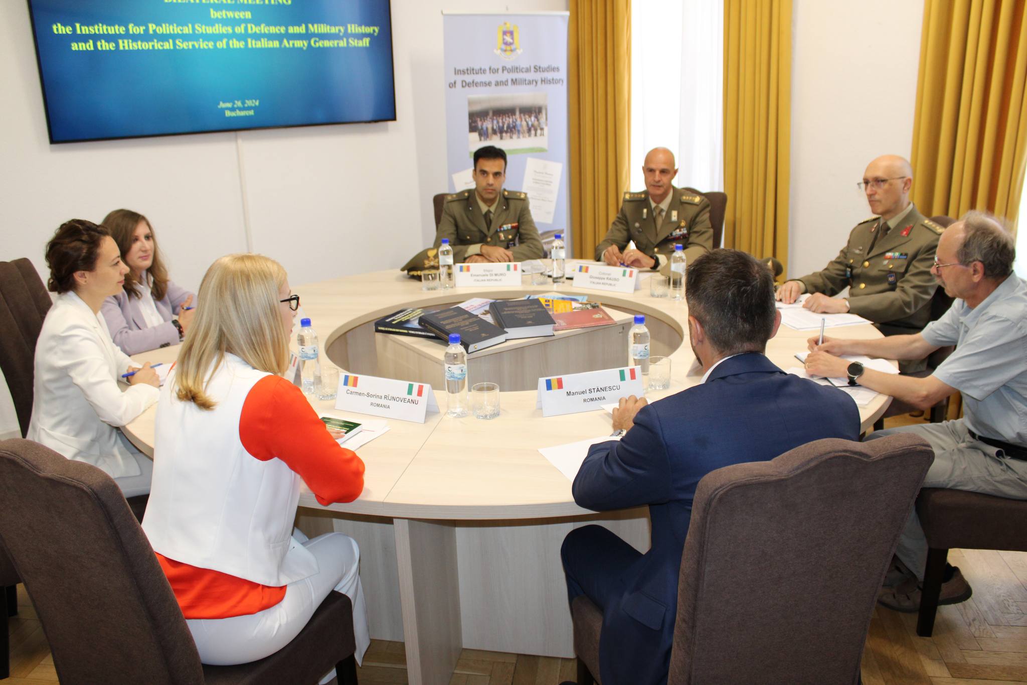 În data de 26 iunie a.c., s-a desfășurat la sediul institutului nostru, vizita delegației Oficiului Istoric din cadrul Statului Major al armatei italiene condusă de comandantul acestuia, colonel Giuseppe Rauso. Delegația ISPAIM a fost condusă de director Carmen-Sorina Rîjnoveanu. La activitate au mai participat cercetători și istorici militari din partea celor două instituții.