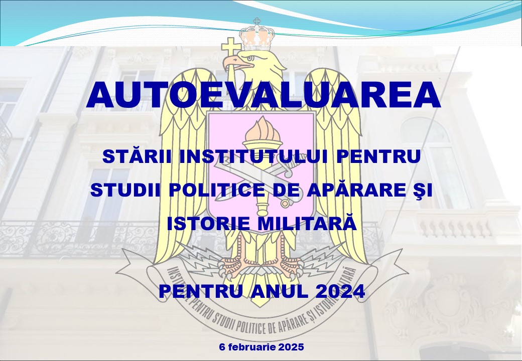 În data de 6 februarie 2025, a avut loc, la sediul Institutului pentru studii politice de apărare și istorie militară, ședința de autoevaluare pentru anul 2024. Activitatea s-a desfășurat în prezența doamnei Simona Cojocaru, secretar de stat și șef al Departamentului pentru politica de apărare, planificare și relații internaționale.