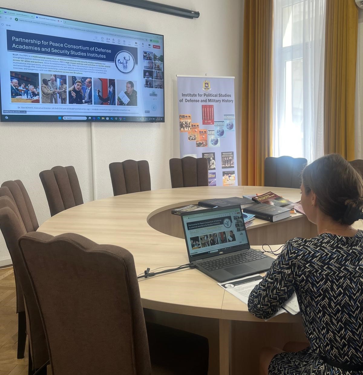 Dr. Cristina Brăgea, cercetător științific în cadrul institutului nostru, a participat la întâlnirea de lucru în format VTC a Comitetului Permanent (CSC) al Consorțiului Parteneriatului pentru Pace al Academiilor de Apărare și Institutelor de Studii de Securitate (PfPC).