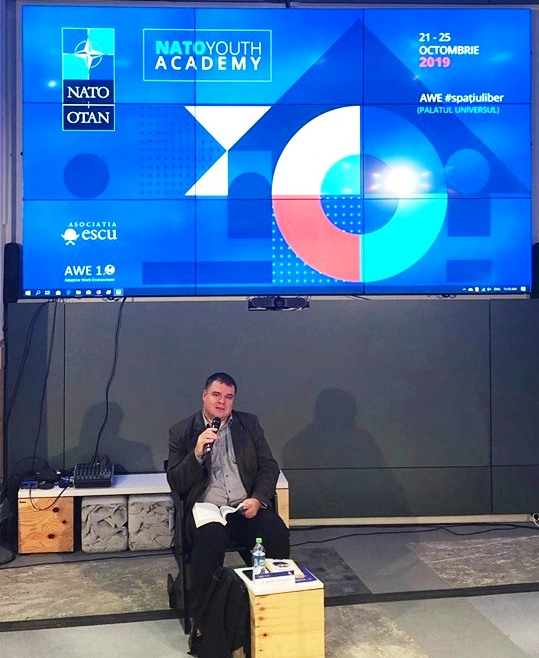 Dr. Serban Filip Cioculescu, cercetător științific în cadrul ISPAIM, a participat în calitate de lector, la programul educativ de familiarizare cu securitatea euroatlantică organizat de Divizia de Diplomație Publică a NATO și Asociația Escu. Evenimentul a avut loc în perioada 21-25 octombrie în clădirea Universul din București. Proiectul intitulat “NATO Youth Academy”, reprezintă un program în premieră în România, în contextul celebrării a 70 de ani de existenţă a NATO și a celor peste 15 ani de când România a devenit un stat aliat în cadrul NATO. Au participat câteva zeci de tineri cursanți, absolvenți ai unor programe de licență și master. Dr. Cioculescu a conferențiat despre apariția NATO, rolul organizației în epoca Războiului Rece și după aceea, precum și despre arhitectura instituțională a acesteia.